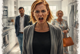 Молодая женщина схватила “маму” за локоть и вытащила с кухни.