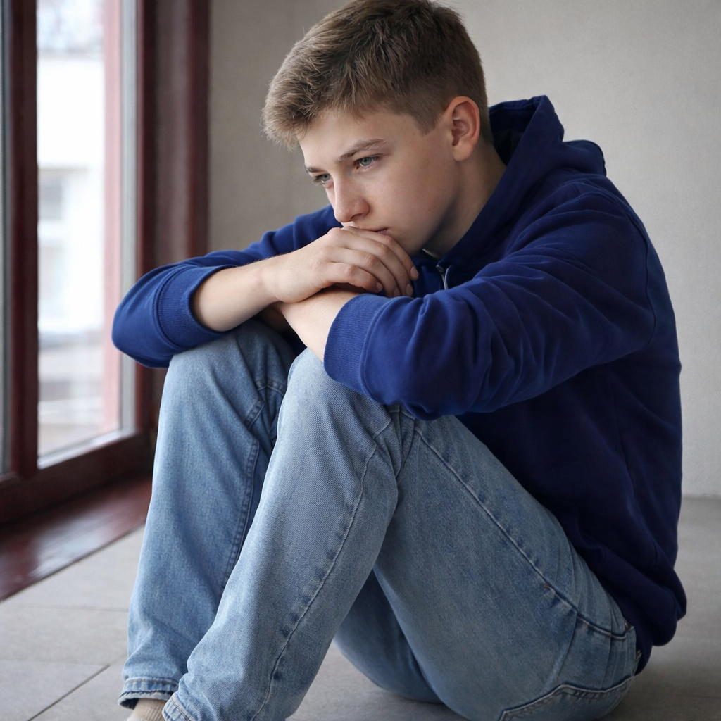 Арсений забежал в свою комнату и сел на пол, прижав колени к груди. По щекам мальчика стекали слезы обиды и отчаяния, но при этом он сохранял серьезное выражение лица. Следом за ребенком вошла мать.