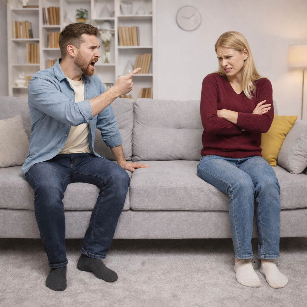 Он кричал это супруге в лицо. Громко, с чувством, с экспрессией. Кричал так, что раскраснелся весь, а на шее и лбу пульсировали вены от напряжения. И при этом он активно размахивал руками.