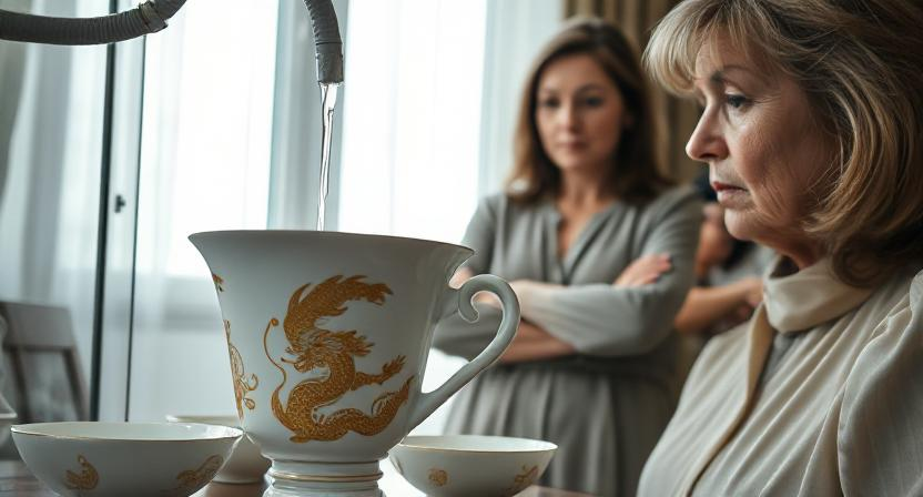 Свекровь даже не повернула головы. Она сидела за большим обеденным столом, расставляя на белоснежной скатерти очередной экспонат своей гордости. Фарфоровый чайный сервиз тончайшей работы. Китайский, расписанный вручную золотом и изумрудно-зелёными драконами. Каждая чашечка стоила как месячная зарплата.