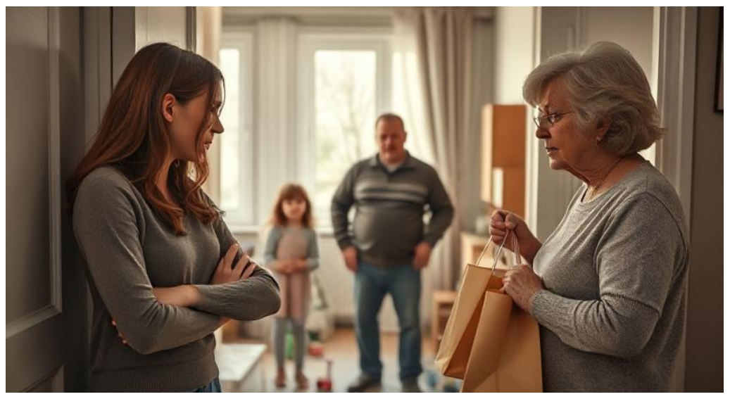 Игорь пошёл открывать, а Надя метнулась в спальню переодеться. Но поздно — Галина Петровна уже ворвалась в квартиру с пакетами продуктов.