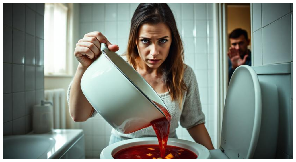 Она взяла кастрюлю обеими руками. Она была тяжёлой, ещё тёплой. Марина понесла её в ванную. Открыла крышку унитаза. И медленно, методично вылила туда густой, тёмно-бордовый борщ. Кусочки капусты, свёклы, картофеля исчезали в воде с тихим чавканьем. Она нажала слив и смотрела, как мощный поток уносит вниз всю эту «заботу».