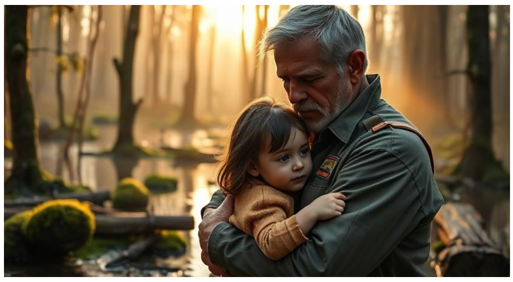 Девочка кивнула и уцепилась за собаку. Гром терпеливо ждал, пока ребёнок покрепче ухватится. И наконец Тихон произнёс: «Гром, давай!» Собака пошла медленно, осторожно. Казалось, всё в лесу смолкло. Пару раз малышка оступилась, но собаку не отпускала.