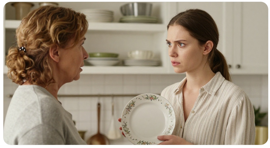 Её посуда — красивый сервиз, подарок от мамы на свадьбу — исчезла из шкафчика. Вместо него там стояли старые, побитые тарелки с облупленной эмалью, которые свекровь привезла с собой.