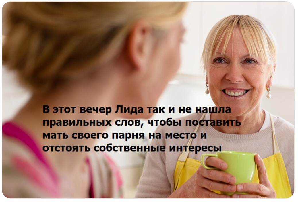 В этот вечер Лида так и не нашла правильных слов, чтобы поставить мать своего парня на место и отстоять собственные интересы.