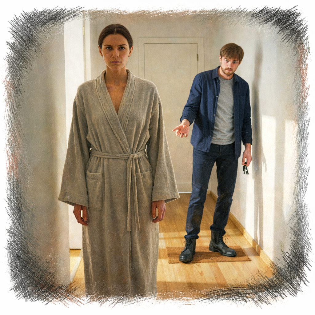Она стояла, перегородив коридор, в старом халате, с убранными волосами, без макияжа. Никакой театральности — только прямая спина и протянутая ладонь. Так выглядят люди, которые приняли решение и больше его не обсуждают.