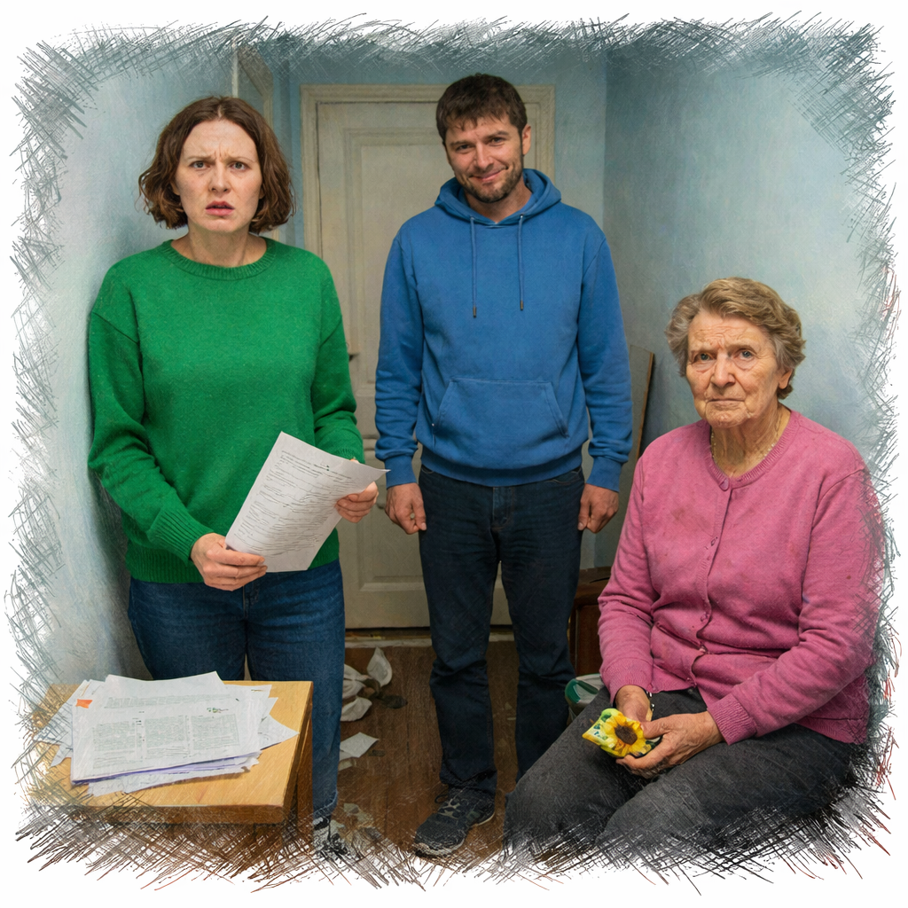 В прихожей было тесно: мокрые следы от ботинок, запах табака и старой тушёной капусты из кухни. На столике — бумаги ровной стопкой, сверху лист с гербовой печатью. Тамара Павловна сидела на табурете, семечки в ладони, как чётки. Анатолий стоял, будто его застали не за документами, а за чем-то похуже.