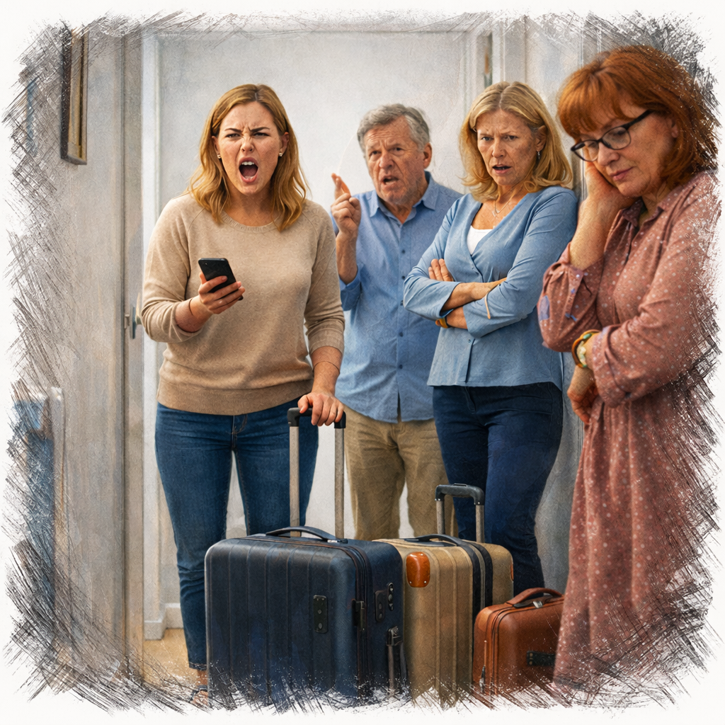 Она всё-таки открыла. На пороге стояла Наталья Сергеевна — прямая, гладкая, собранная, как коробка с инструментами. Рядом — незнакомая женщина с усталым, злым лицом и девочкой лет шести, которая сжимала мамину руку, как спасательный круг. У ног — два чемодана и пакет с детским рюкзачком.