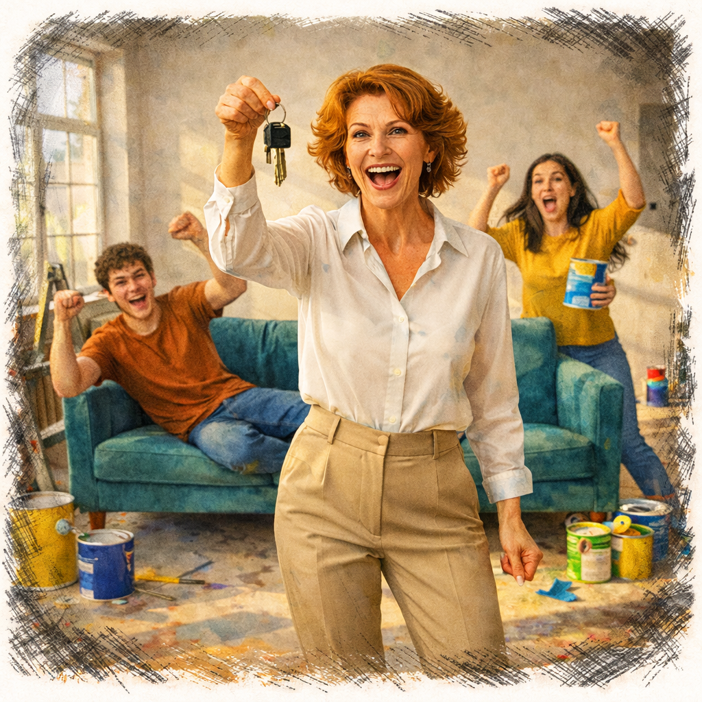 Ольга замерла с открытой банкой краски в руках. Бежевый пигмент, тёплый, песочный, с лёгким золотистым отливом — она выбирала его неделю, прикладывала образцы к стене при разном освещении, советовалась с дизайнером в интернете, читала форумы. Это был цвет утра, цвет спокойствия, цвет дома, который наконец-то стал их собственностью.