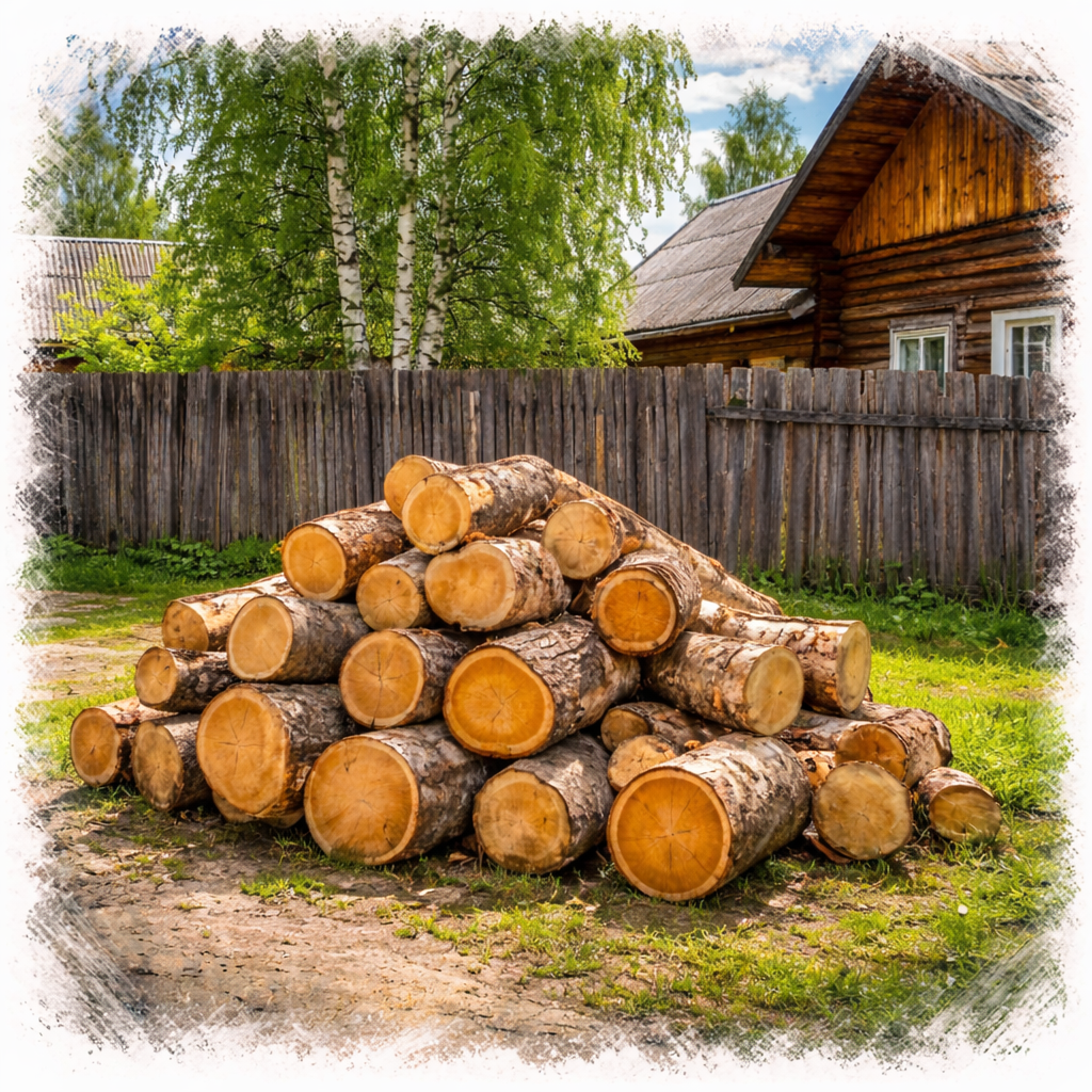 Она кивнула за забор, где лежала внушительная гора березовых чурбаков.