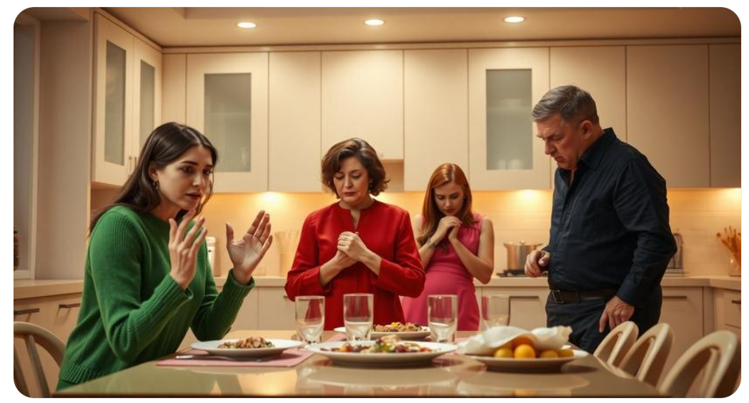 И вот тут воздух в комнате стал густым, как перед грозой. Алиса перестала жевать. Мама побледнела. Я напряглась.