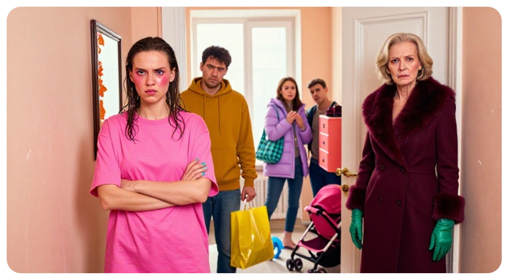 Катя стояла в коридоре босиком, в старой футболке, с влажными после душа волосами, и смотрела на свекровь так, будто та только что объявила, что на кухне теперь будет автомойка. За дверью уже топтались двое: плотный мужчина в куртке с меховым воротником и девушка в бежевом пуховике, прижимавшая к себе клетчатую сумку.