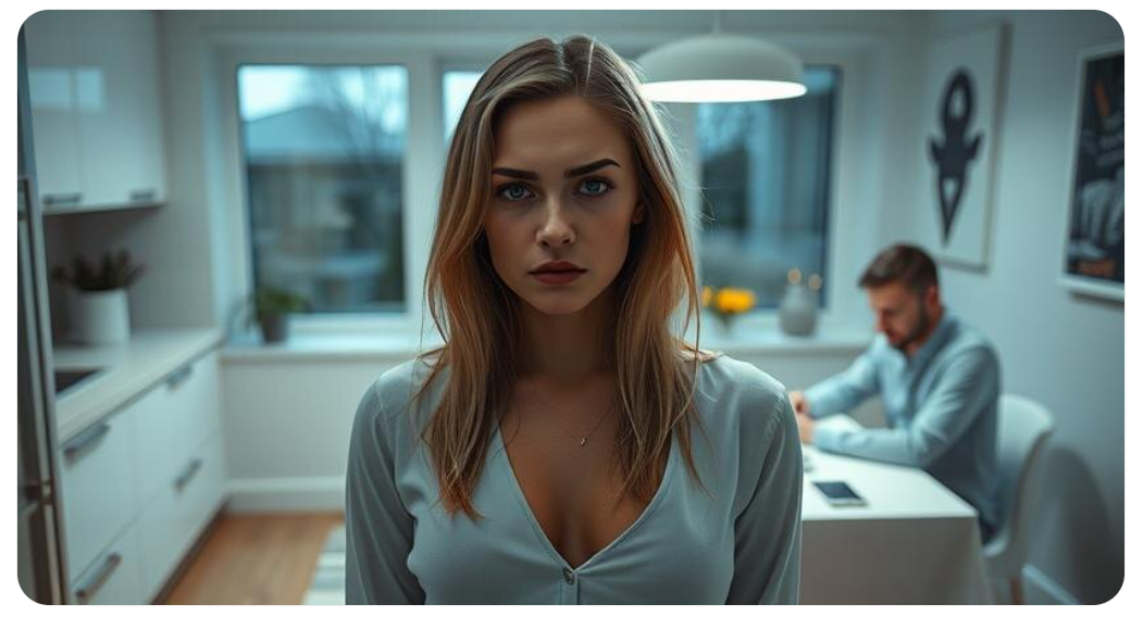 Максим замер в дверях, сжимая ключи. В глазах — усталость, на лице — виноватая тень. Он только что вошёл с работы, ещё не успел снять куртку, а скандал уже стоял в воздухе.