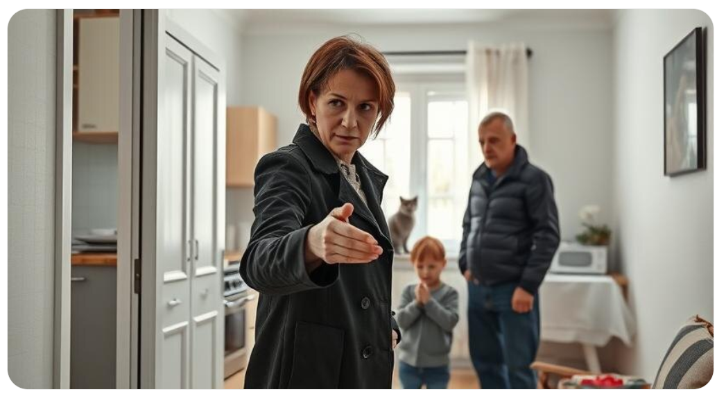 Тишина накрыла комнату. Галина Петровна побледнела. Леонид сделал шаг назад. Кот мяукнул — коротко, будто точку поставил.