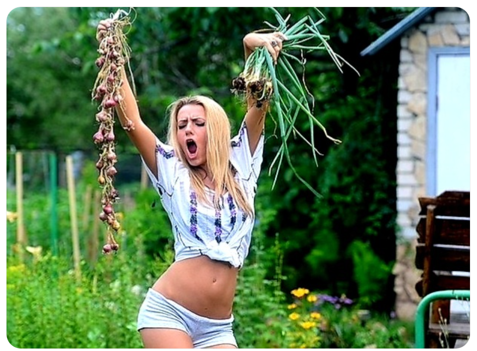 — А? Что? — обе женщины резко приняли вертикальное положение, держа при этом в руках только что сорванные мясистые помидоры.